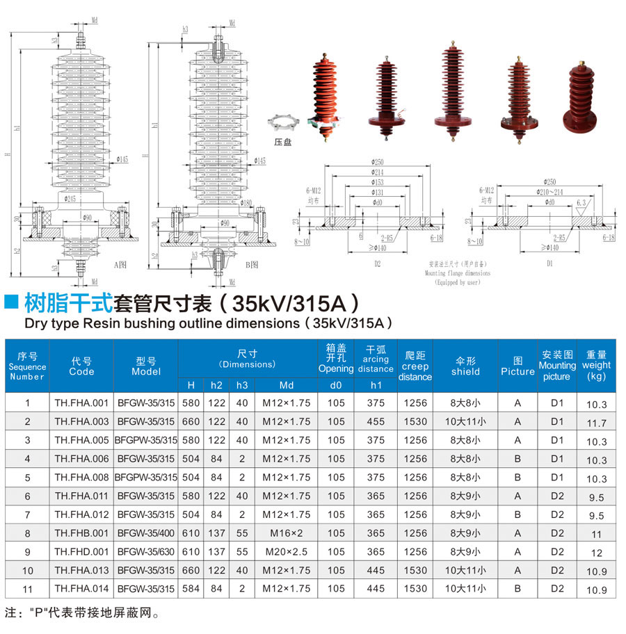 Resin dry bushing 35kV/315A