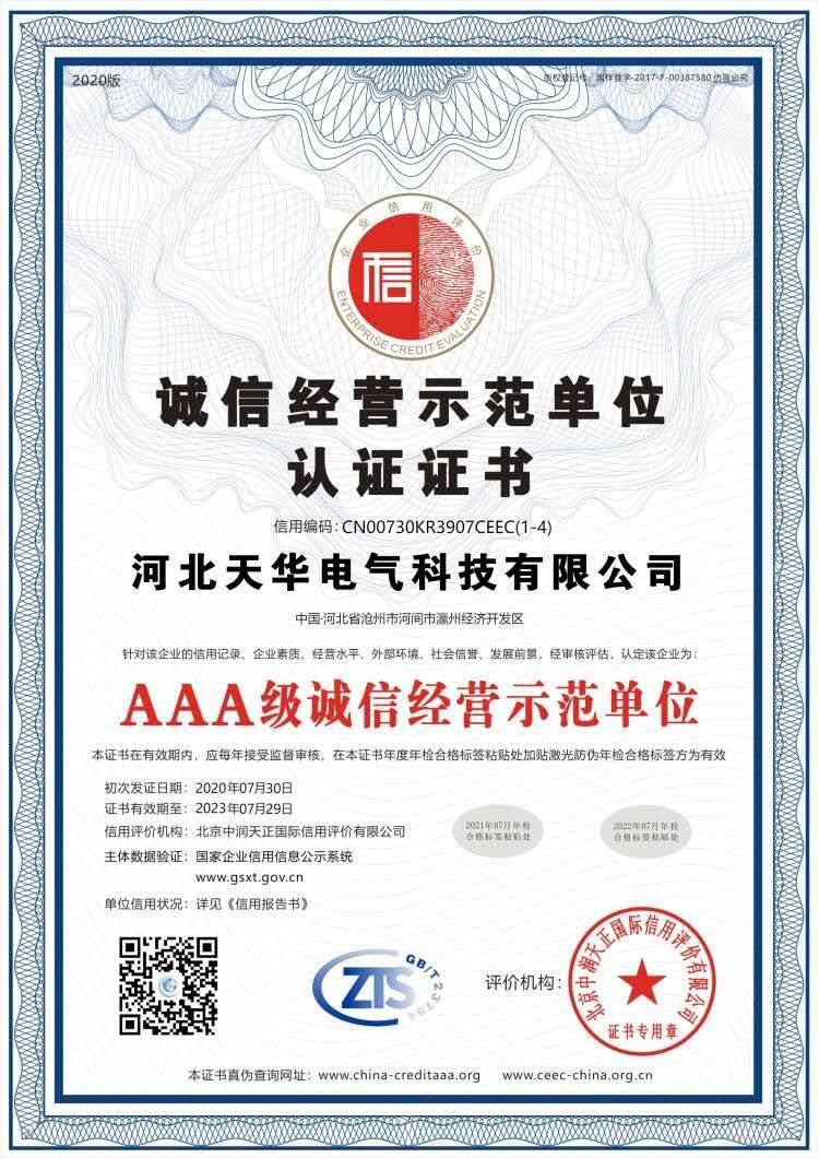 誠(chéng)信經(jīng)營(yíng)示范單位認(rèn)證證書