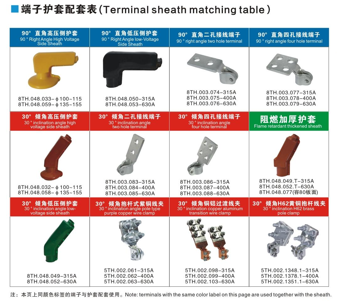 端子護(hù)套配套表