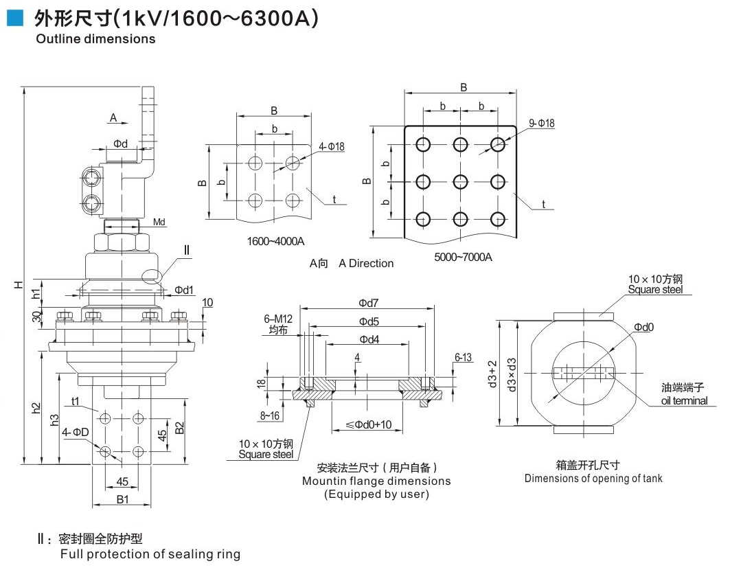 鋁法蘭瓷套管1kV/1600~6300A鏟形連接套管