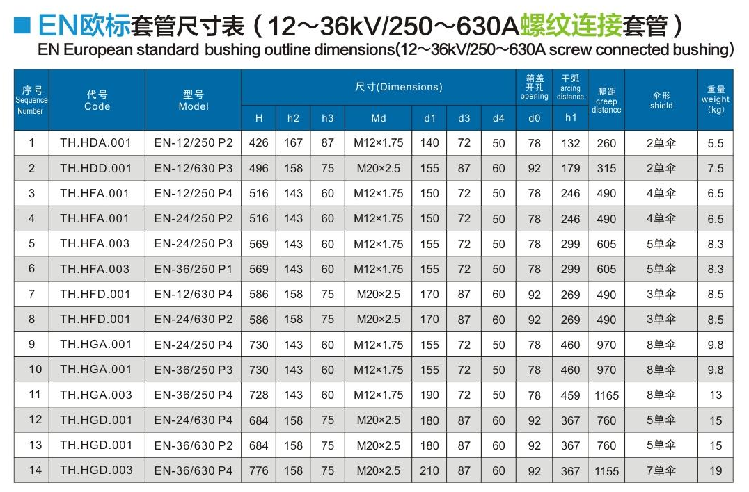 EN歐標(biāo)套管12~36kV /250~630A螺紋連接套管
