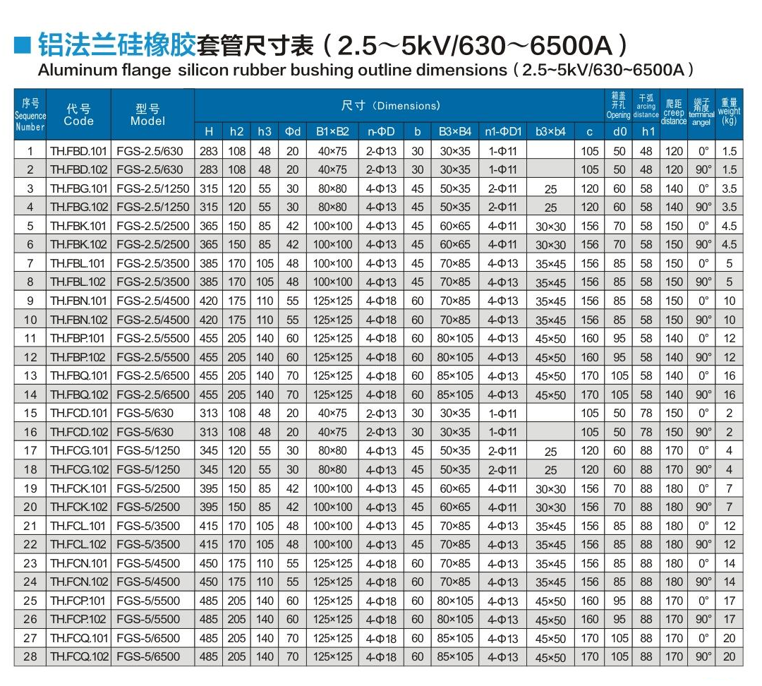 鋁法蘭硅橡膠套管2.5~5kV/630~6500A