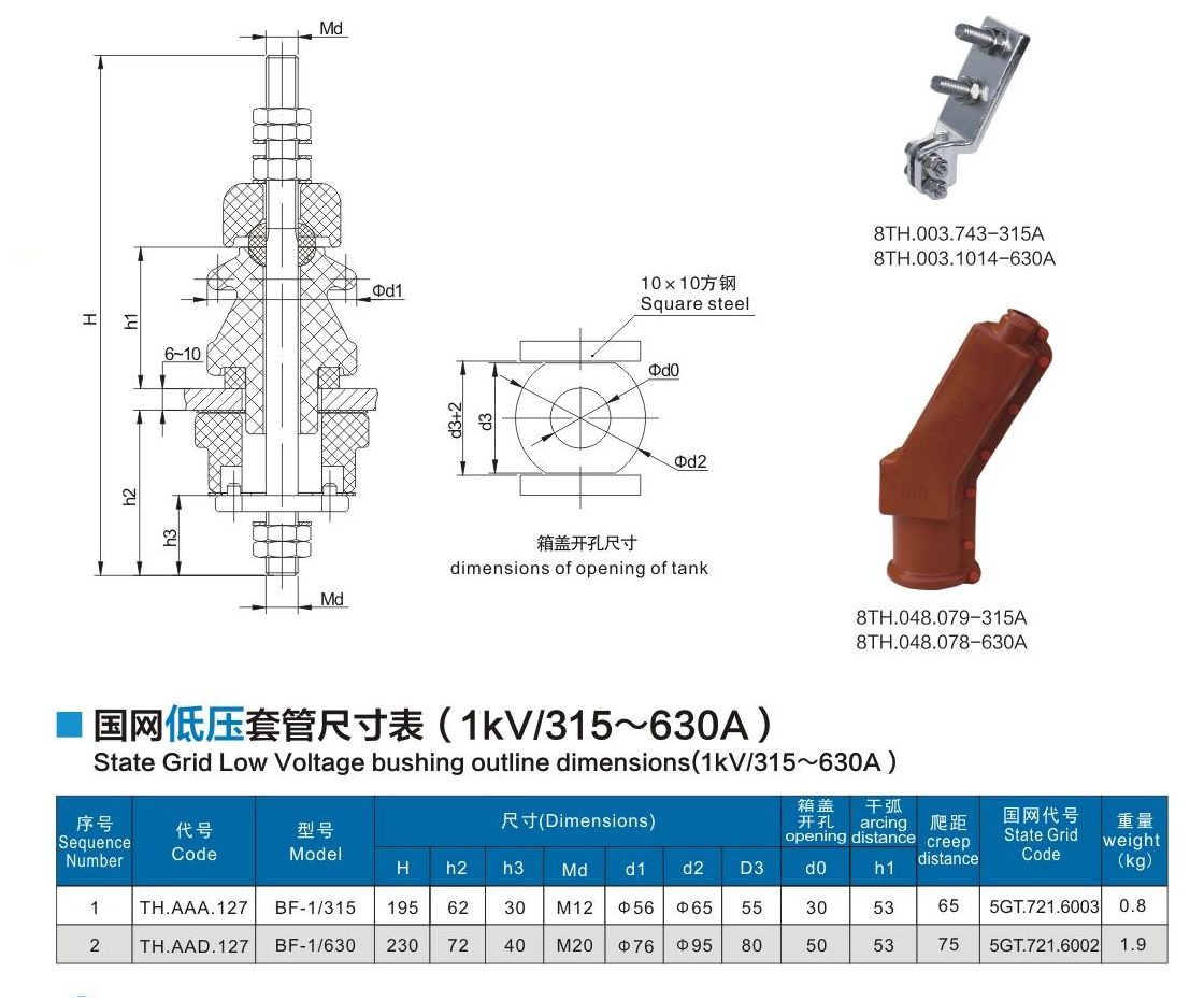 國(guó)網(wǎng)低壓套管1kV/315~630A